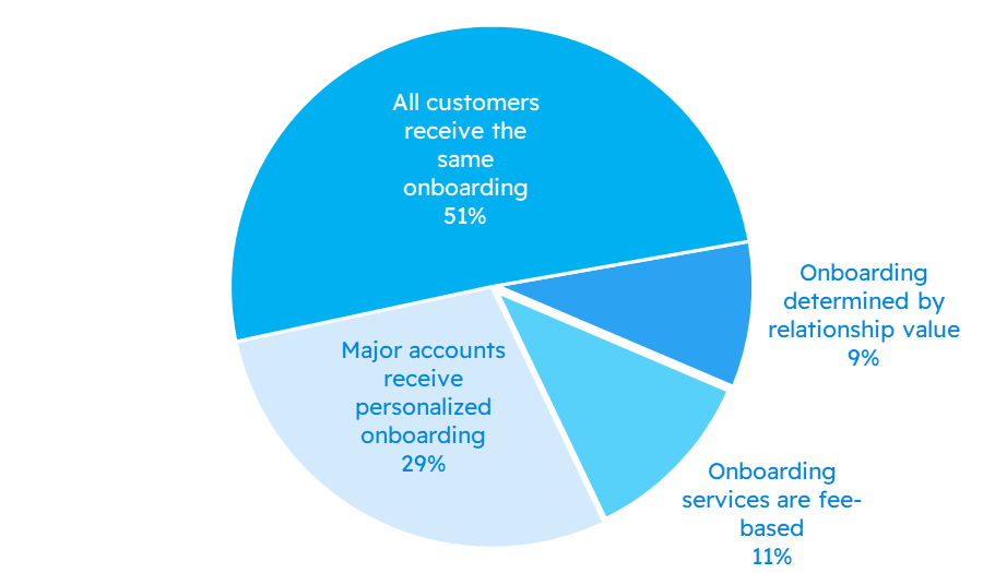 The following charts indicate the practices companies use to onboard new customers.